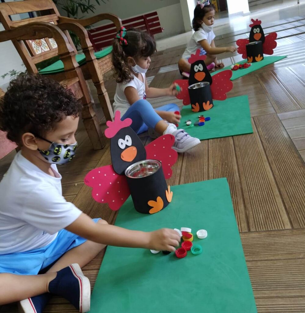 Os alunos do Infantil 3 vivenciaram, durante a semana, jogos diversificados e brincadeiras divertidas a partir da exploração da parlenda “A galinha do vizinho”.