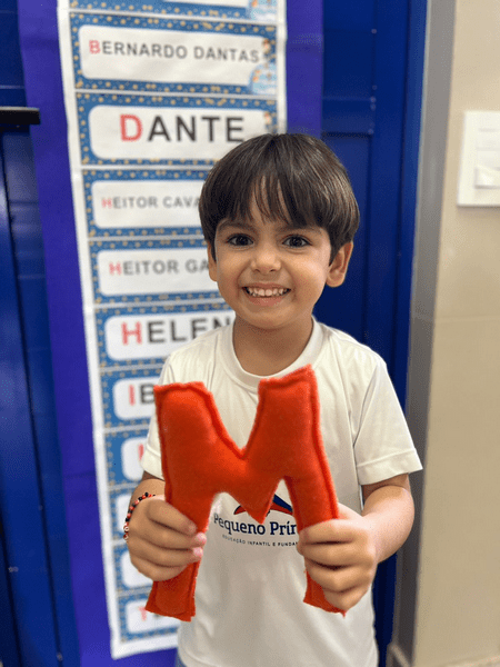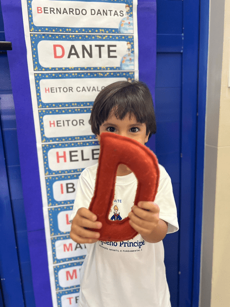 Aprendendo a letrinha que faz o nosso nome começar. Hoje foi dia de descobrir a mágica da letra inicial do próprio nome e dar os primeiros passos no mundo das palavras!