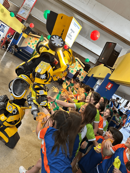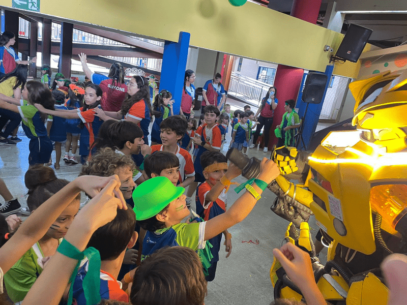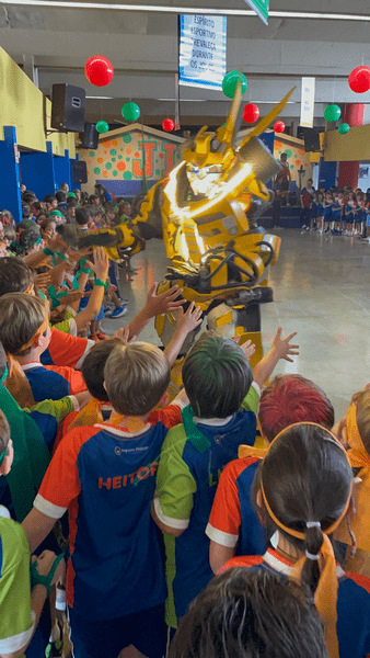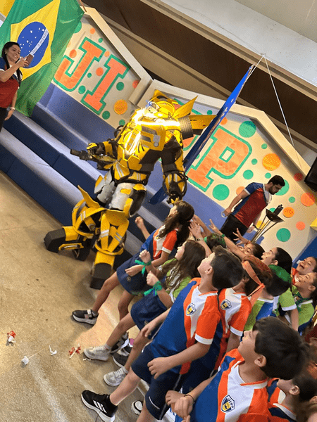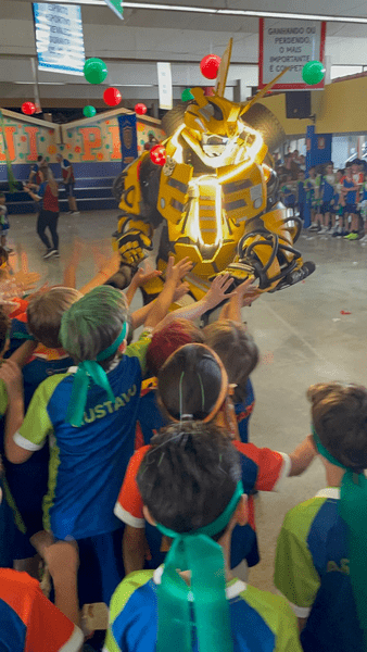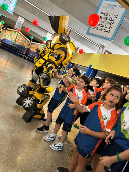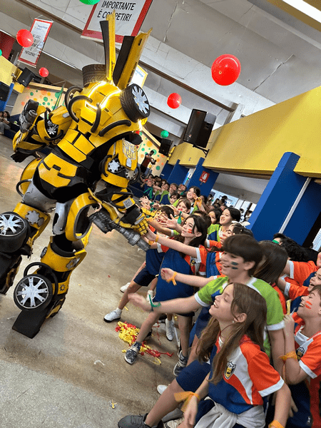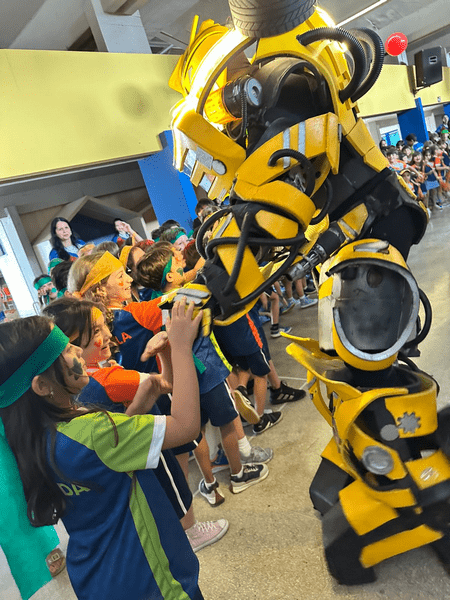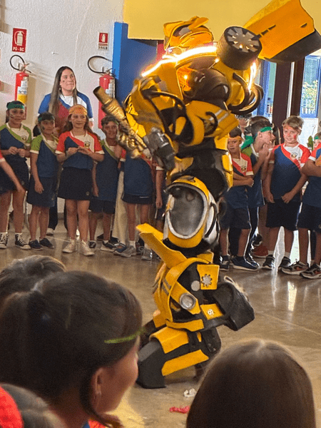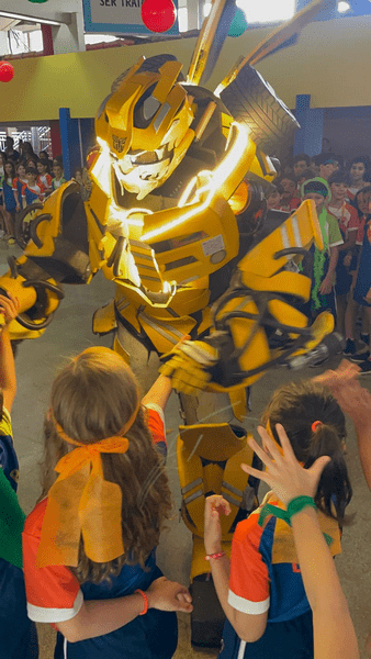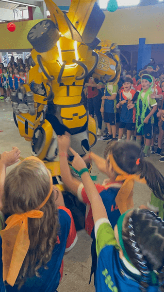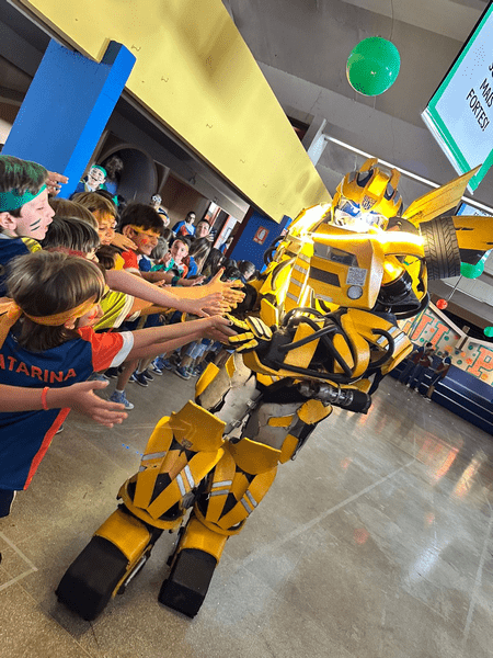 O grande encerramento ficou por conta da presença ilustre do Bumblebee 🤖✨, que animou e surpreendeu os alunos.