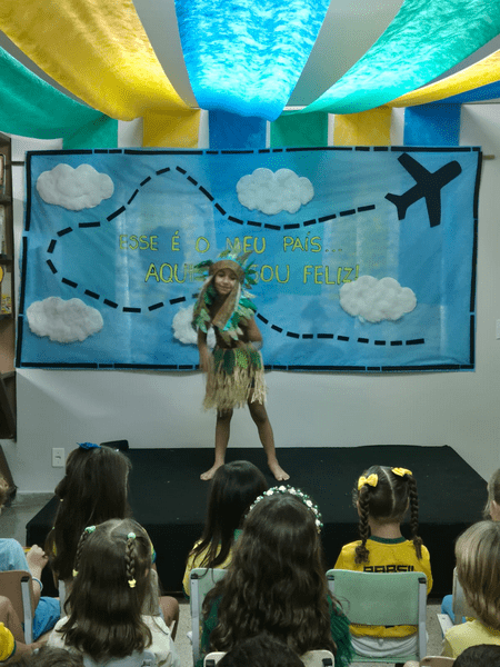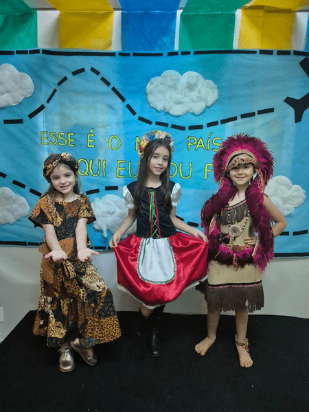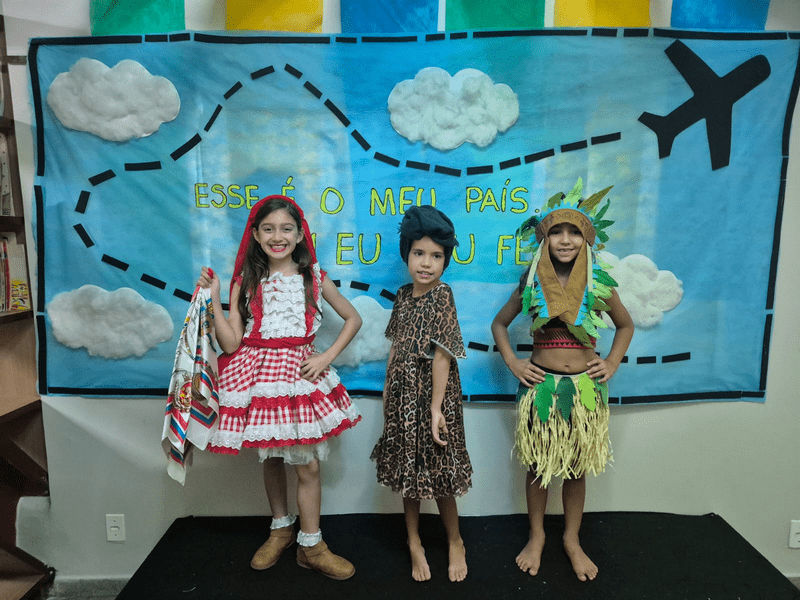 No período matutino, tivemos a participação especial das alunas Julia, Maria Beatriz e Ana Carla (Fundamental I), que representaram os portugueses, indígenas e africanos. Também contamos com a turma da professora Adriany, que abrilhantou a abertura com uma linda apresentação musical.