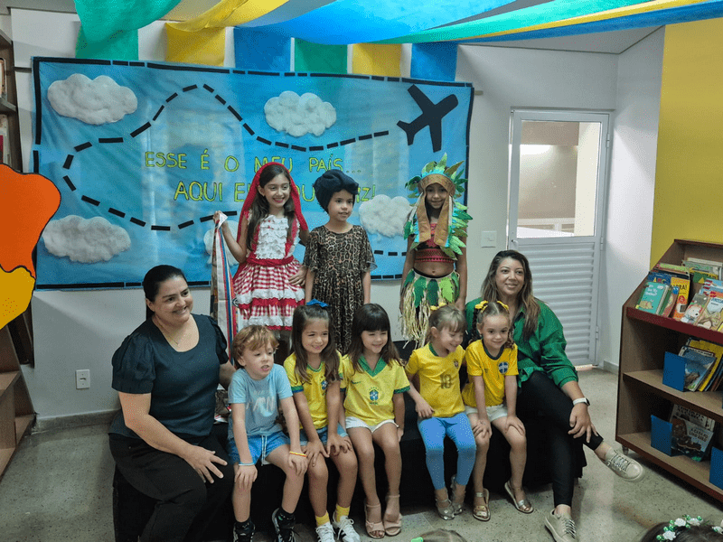 Hoje foi a abertura do projeto “Esse é o meu país… Aqui eu sou feliz”, desenvolvido pelas turmas do Infantil 4.