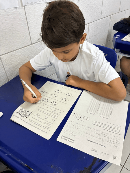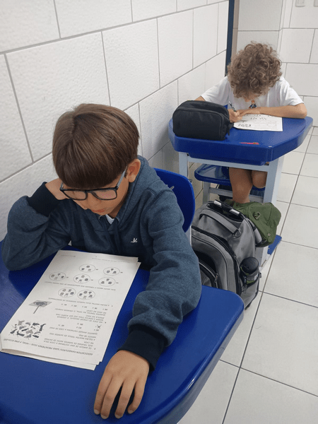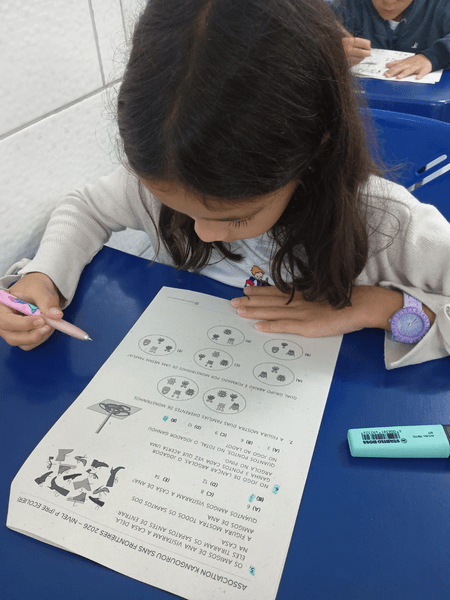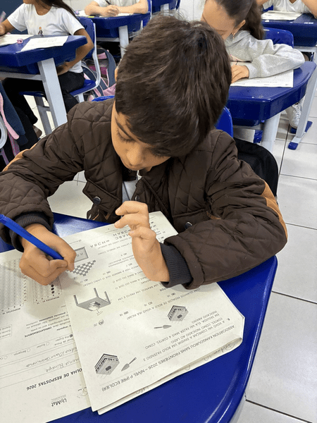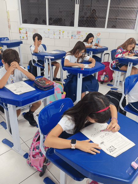 Alunos do 4° ano concentrados na prova do Canguru 🦘