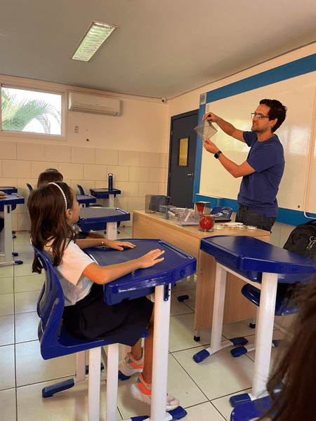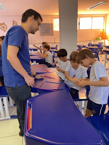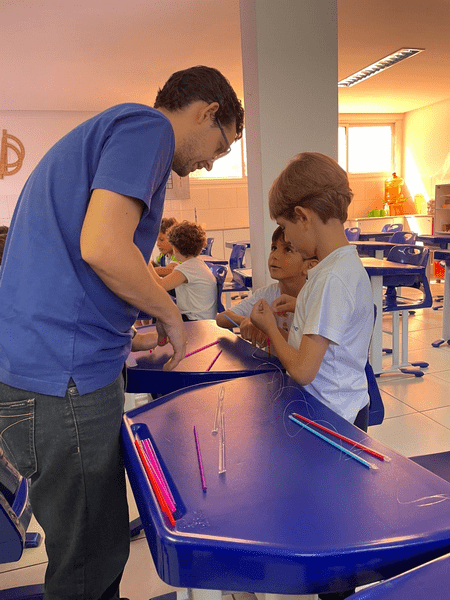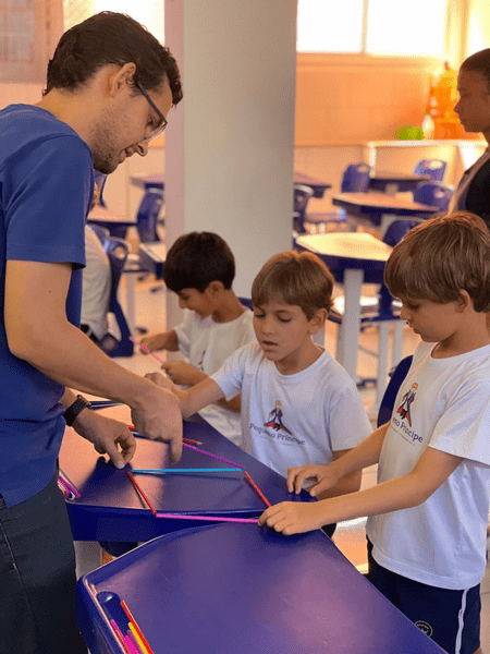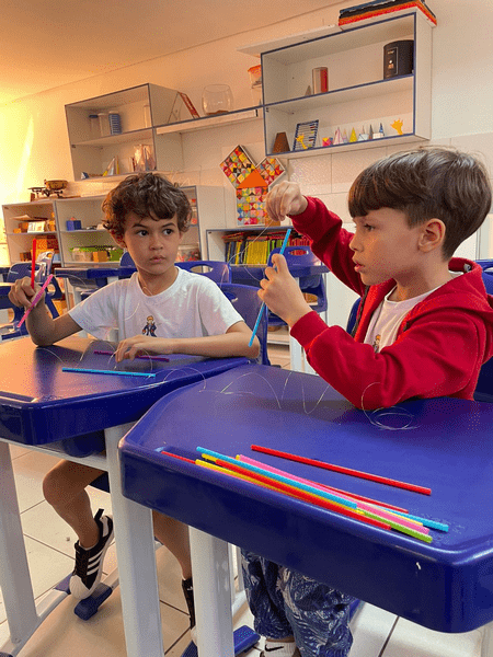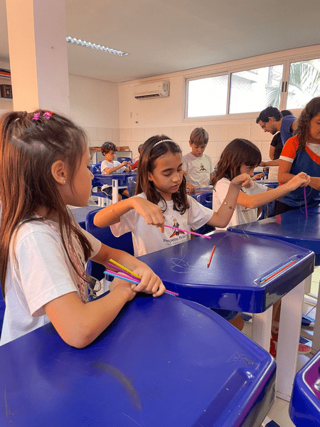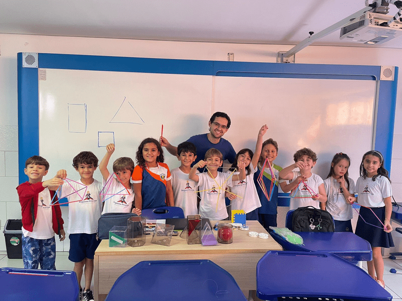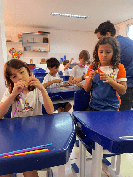 As crianças se envolveram com entusiasmo e aprenderam, de forma prática e divertida, sobre os sólidos geométricos. Foi um momento de muita descoberta, participação e construção do conhecimento.