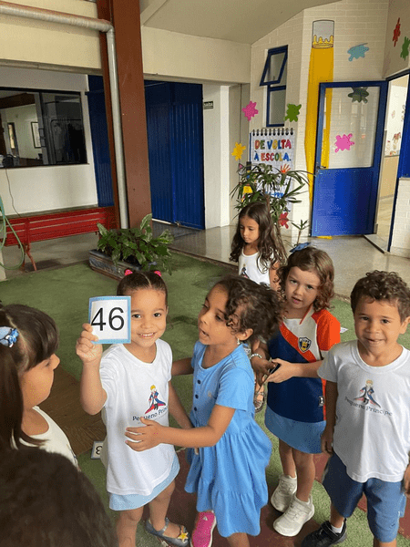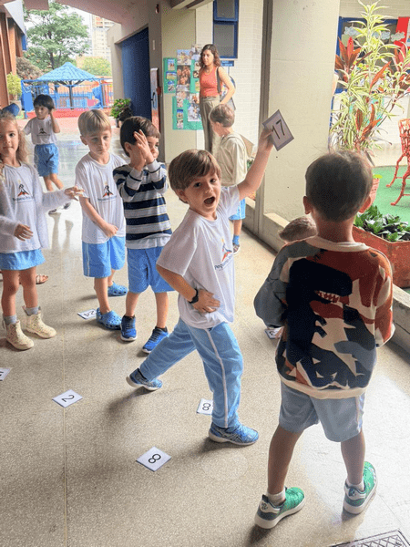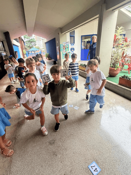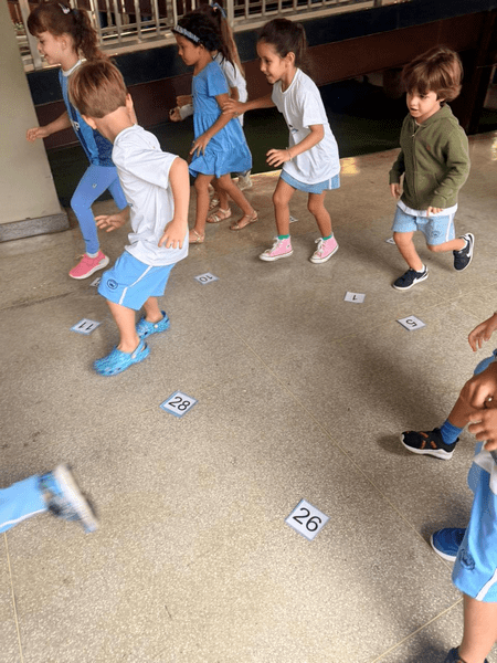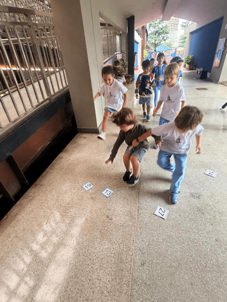 No Infantil 5, das professoras Elen e Simara, aprender os números foi ainda mais divertido com a Corrida dos Números, uma proposta lúdica que estimulou o reconhecimento numérico, a atenção e a participação ativa das crianças por meio do movimento e da brincadeira.