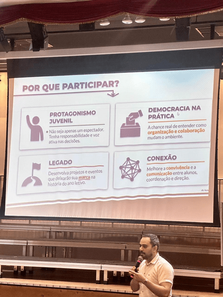 Cada turma elegerá uma chapa formada por três alunos (representante, vice-representante e conselheiro), que terão a função de representar a turma, ajudar na comunicação com a escola e colaborar na organização de projetos e eventos ao longo do ano. Todo o processo é acompanhado de perto pela coordenação, com regras claras, campanha ética e foco educativo.