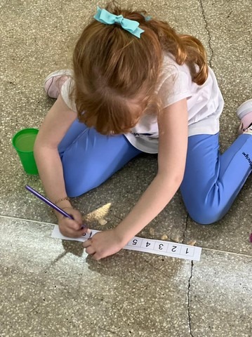 Os alunos do Infantil 4, das professoras Elen e Simone, fizeram a relação número e quantidade, utilizando as pedrinhas como recurso.