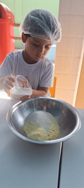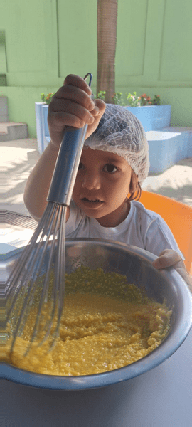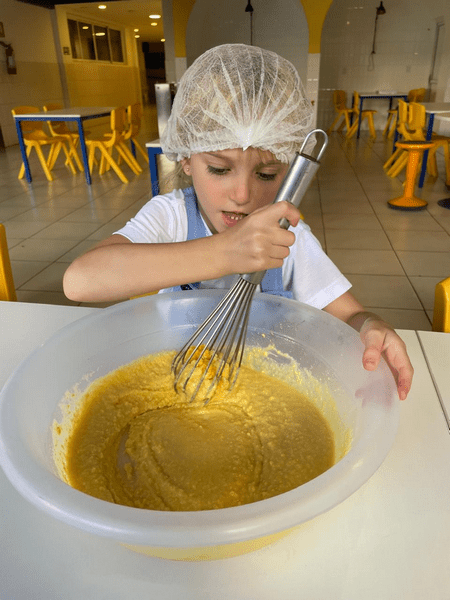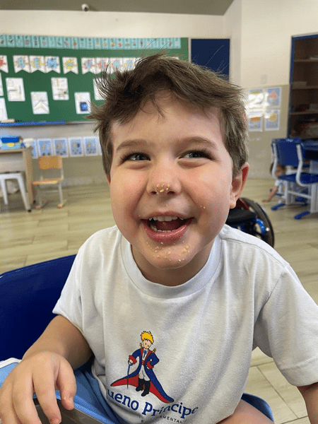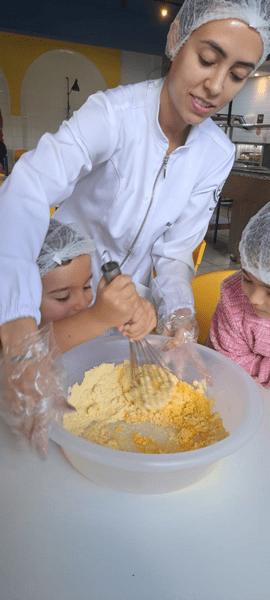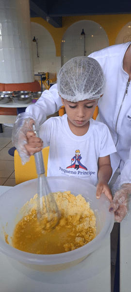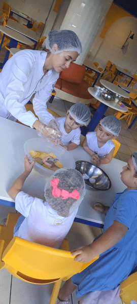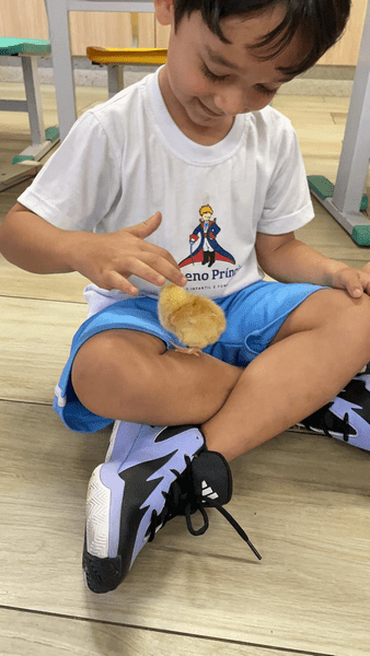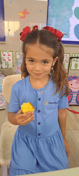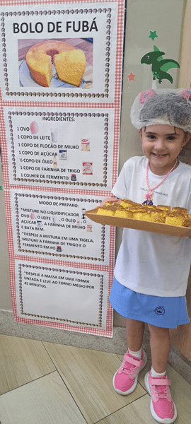 Colocamos a mão na massa, seguimos a receita da Dona Galinha e fizemos um delicioso bolo de fubá 🌽🧁 E a surpresa do dia? Um pintinho da história veio nos visitar! 🐥 Encanto, imaginação e aprendizado em cada detalhe!