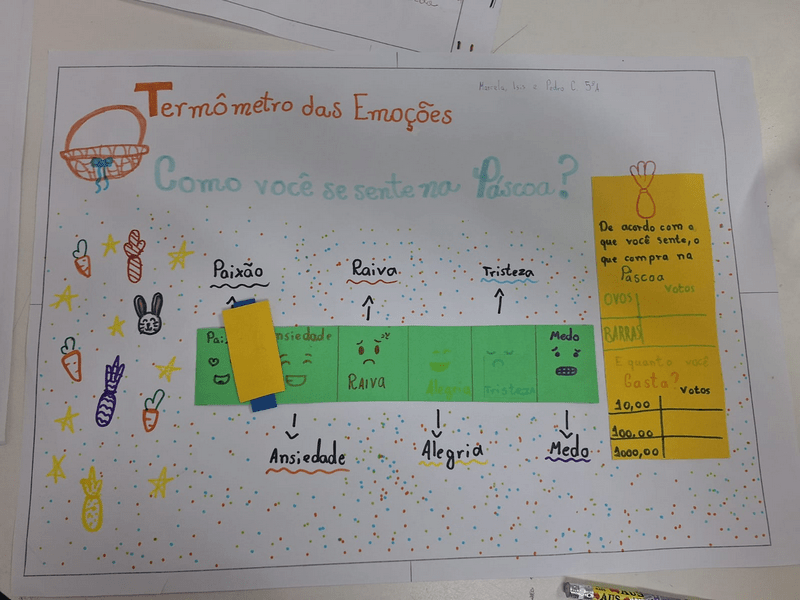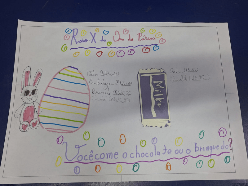 Nossos pequenos economistas em ação na atividade de Páscoa Financeira, aprendendo a calcular e a consumir com consciência.
