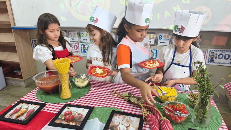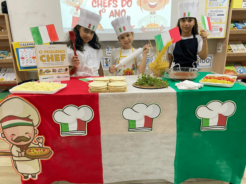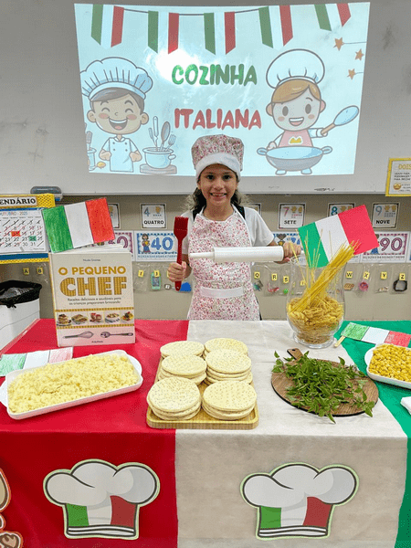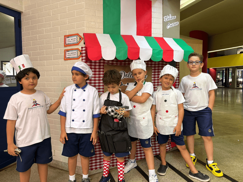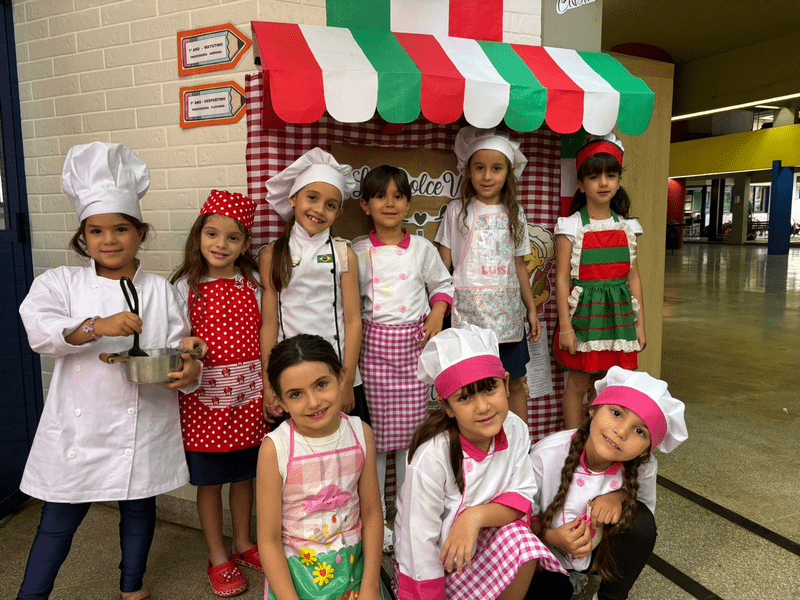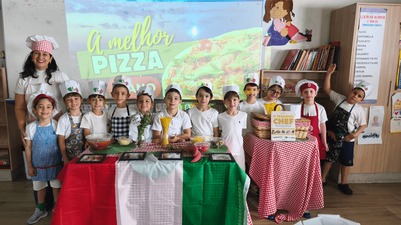 Fechamento com chave de outro do projeto “Um mundo de crianças”. Itália trouxe beleza, cultura, arte, história, aprendizagem e muitas delícias. As famílias participaram com dedicação, contribuindo para os nossos estudos ficarem mais significativos e lúdicos. Hoje foi dia de colocar a mão na massa! As crianças prepararam e degustaram suas próprias pizzas, vivenciando um pouquinho do sabor e da cultura italiana.