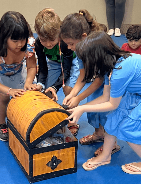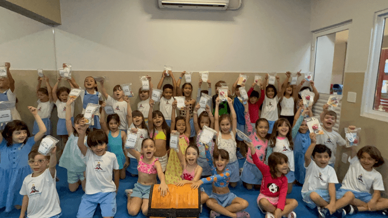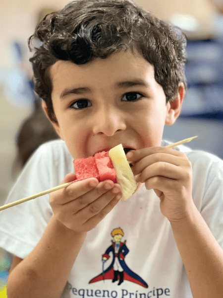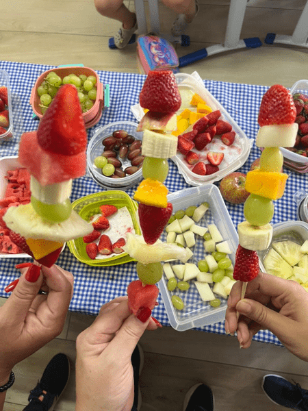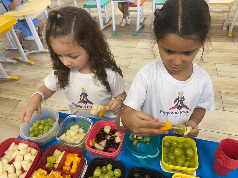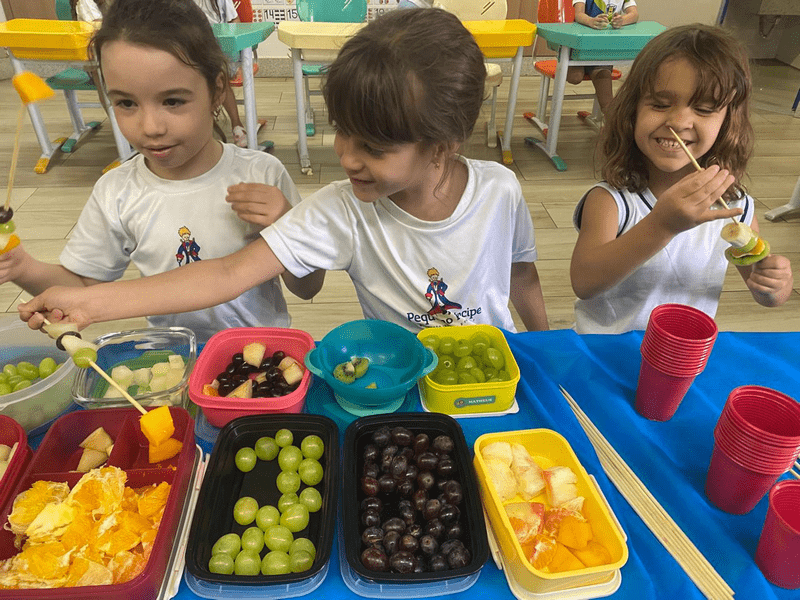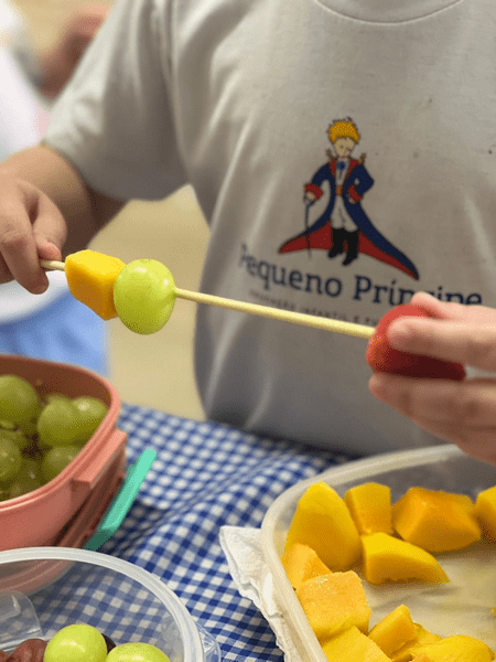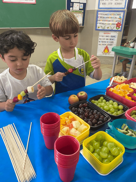 Hoje as crianças do Infantil 5 fizeram deliciosos “espetos de alegria” e também participaram de um divertido “caça ao tesouro”.
