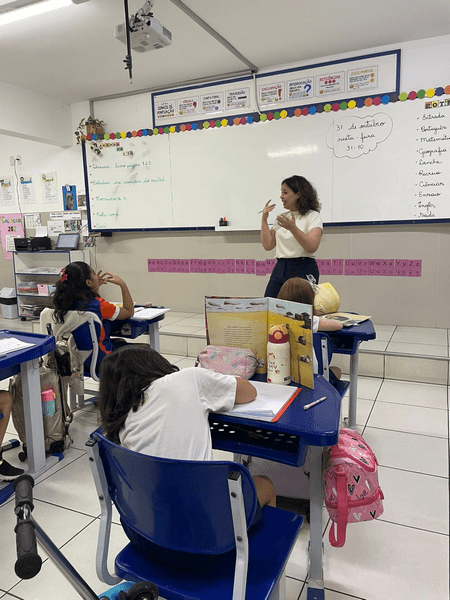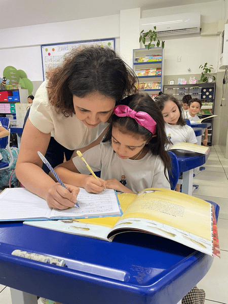Hoje, no 2º ano, recebemos a visita da coordenadora Taty, que veio apreciar as lindas letras dos nossos alunos.