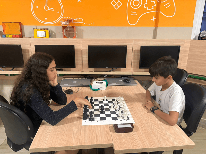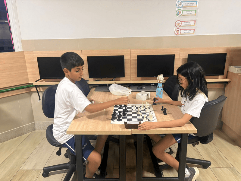 As aulas de xadrez já estão acontecendo e alunos do 4º ao 9º ano estão convidados a participar! 🏆♟️